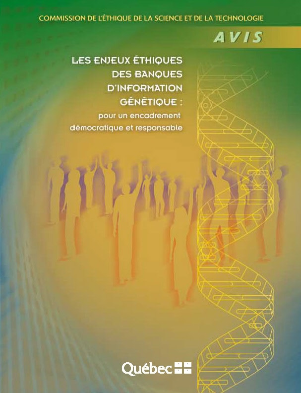 Il existe au Québec des banques d'information et des banques de spécimens qui sont ou qui pourraient être utilisées à des fins de recherche en génétique humaine sans que l’existence, le contenu et la gestion de ces diverses banques soient connus et suffisamment encadrés. Le rôle et l'importance de l'information génétique dans la recherche biomédicale ne sont pas négligeables; toutefois, la somme d'information personnelle véhiculée par l'ADN d'un individu est considérable. Devant les utilisations secondaires possibles de cette information et la commercialisation qui peut être faite des résultats de recherche, il importe de bien saisir la portée des banques d'information génétique, dont leur constitution, leur gestion et leur utilisation.